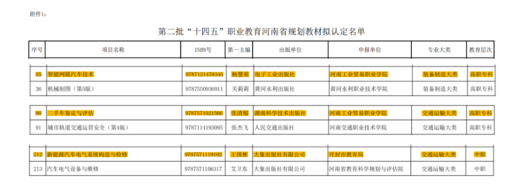 同时,我院王国彬副教授主编的《新能源汽车电气系统构造与检修》,通过开封市教育局推荐,成功入选第二批“十四五”职业教育河南省规划教材,且获推第二批"十四五"职业教育国家规划教材。