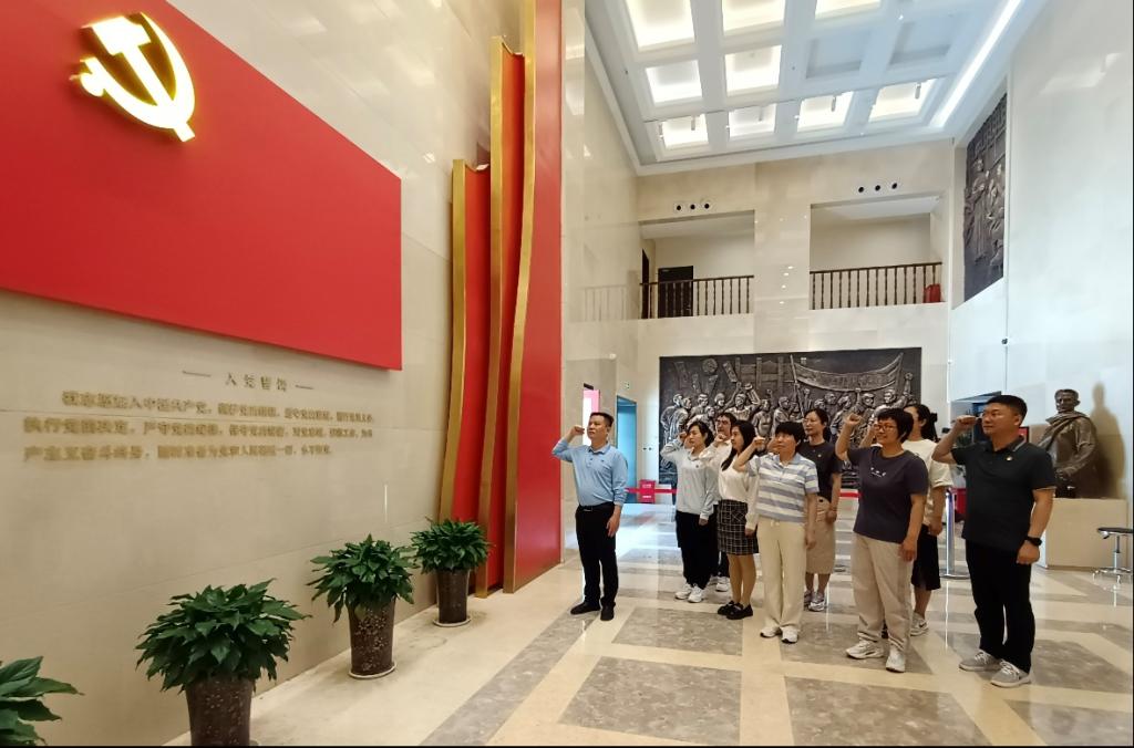 同志们在深切缅怀和无限敬仰中走进二七纪念堂展馆。首先,同志们认真倾听讲解员的介绍,仔细瞻仰馆内陈列的大量实物、图片、文字等。一幅幅永载史册的光辉长卷,真实记录着那段令人难忘的历史和二七工人的英勇事迹,展现了广大劳工在党的领导下英勇斗争的光辉历程。