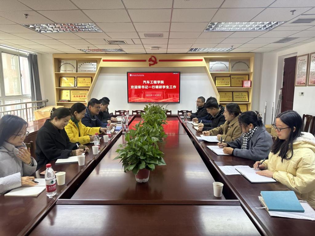 为深入学习贯彻习近平新时代中国特色社会主义思想,特别是习近平总书记关于教育的重要论述,进一步研究学生工作的新形势、新情况和新任务,收集师生对学生教育管理工作的意见与建议,切实提升学生管理工作水平和服务质量,2023年11月29日上午,校党委副书记柴瑞帅,团委副书记胡彬彬、田莉莉,学生处副处长赵连灯、王秀华、雷启英一行赴我院就学生管理工作进行调研座谈。