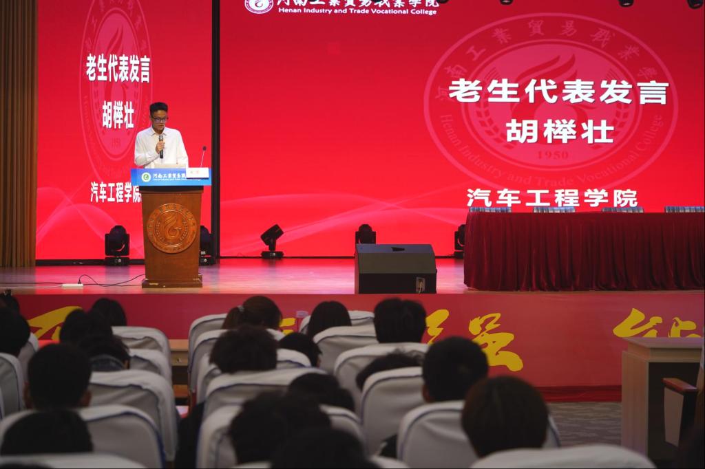 优秀学生代表胡榉壮分享了自己的学习经验和大学生活感悟。他从学习规划、社团活动、社会实践等方面为新生们提供了宝贵的建议,鼓励大家积极进取,勇于挑战自我,在大学这个广阔的舞台上实现自己的梦想。