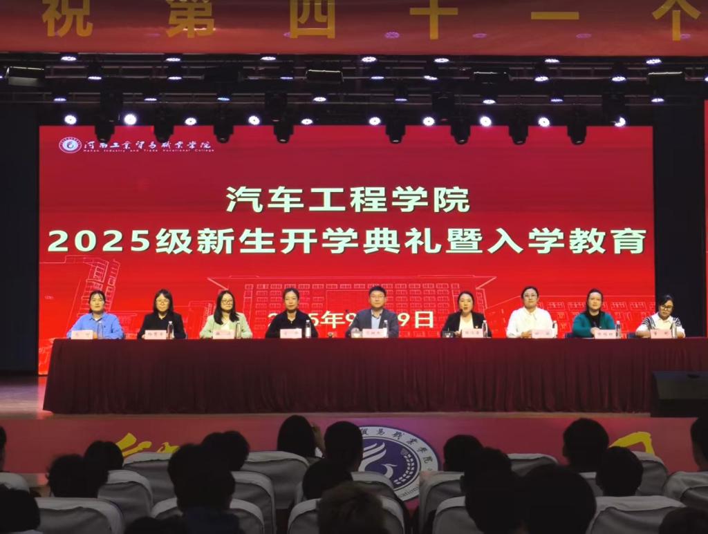2025年9月19日下午,汽车工程学院在体育馆报告厅隆重举行 2025 级新生开学典礼暨入学教育大会。学院领导班子成员、各专业负责人、教师代表、辅导员以及全体 2025 级新生齐聚一堂,共同开启大学新征程。大会由党总支书记陈冰赛主持。