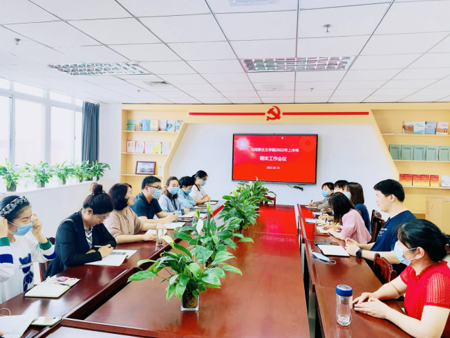 6月10日下午,马克思主义学院召开2022年上半年期末工作会议,学院全体专职教师参会,会议由学院院长靳翠梅主持。