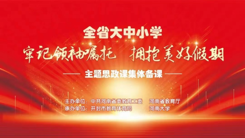 6月27日上午,由省委教育工委、省教育厅主办,开封市教育体育局、河南大学承办的全省大中小学“牢记领袖嘱托,拥抱美好假期”主题思政课集体备课活动在线上开展。我院组织教师积极收看,并进行了热烈讨论。