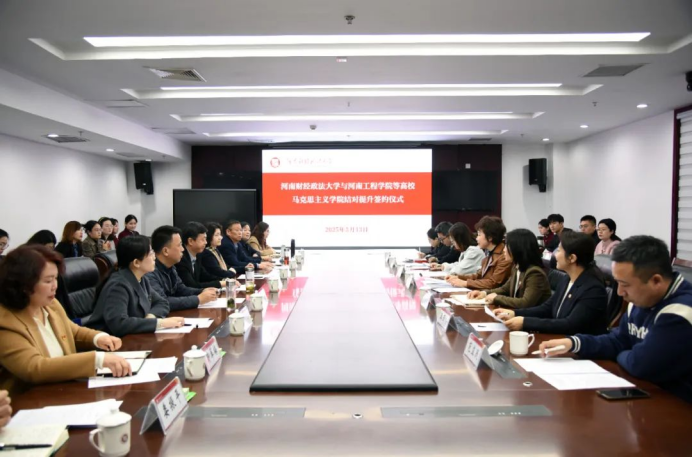3月13日,我校马克思主义学院与河南财经政法大学马克思主义学院举行结对提升签约仪式,副校长刘卫红、马克思主义学院院长靳翠梅、办公室主任张小丽、教研室主任张旭影以及五所结对高校的马克思主义学院领导班子、教师代表共28人参加结对仪式,共同见证校际合作新篇章。