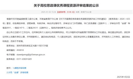 25.12月24日,在2025年度全省优秀思政课程资源评选中获示范“金课”二等奖1项,优秀案例特等奖1项、一等奖4项、二等奖1项。