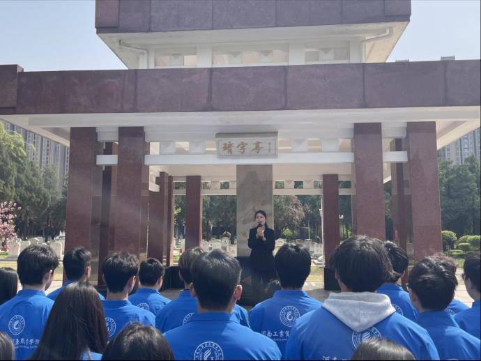 春风和煦,庄严肃穆,在清明节即将来临之际,为追寻先烈伟岸足迹,赓续红色基因血脉,弘扬爱国主义精神,汇聚前行奋进力量,4月3日,马克思主义学院携手校团委,带领粮食工程学院、机电工程学院、工商管理学院、经贸管理学院师生代表80余人前往郑州烈士陵园开展了一场以“缅怀革命先烈 传承爱国情怀”为主题的清明祭扫活动。
