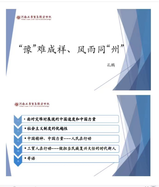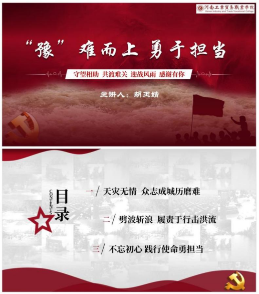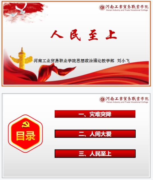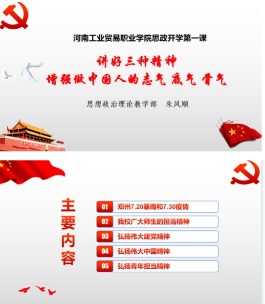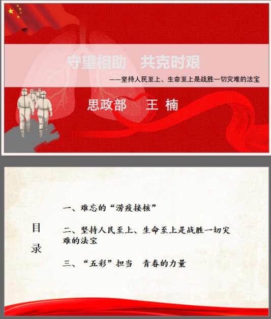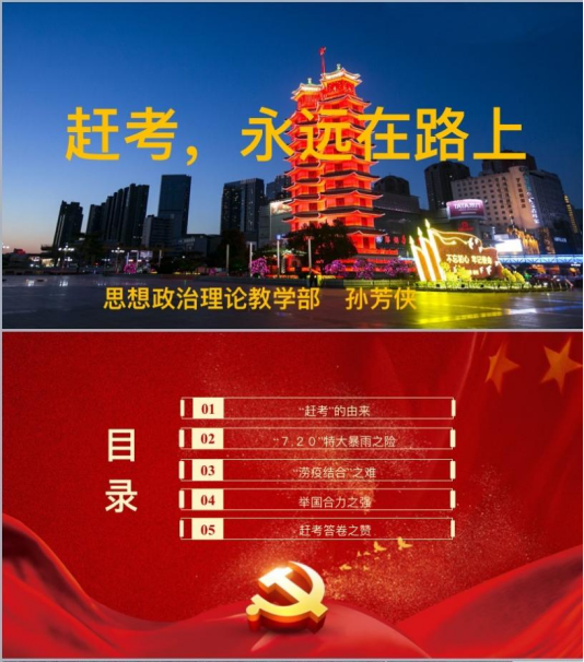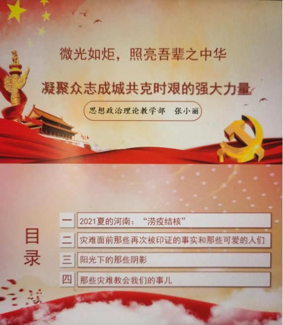 在前期选题的基础上,思政课教师认真备课,制作精美的课件,把社会大课堂融入思政小课堂,运用鲜活的“灾难教材”阐述“中国共产党为什么能”“马克思主义为什么行”“中国特色社会主义为什么好”。下面,我们就来先睹为快吧!