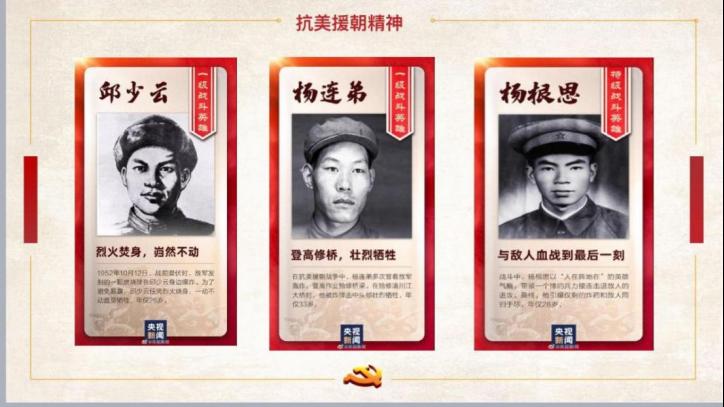 “一个有希望的民族不能没有英雄,一个有前途的国家不能没有先锋。”“崇尚英雄才会产生英雄,争做英雄才能英雄辈出。”硝烟虽然散尽,但伟大的抗美援朝精神将激励中国人民奋勇向前!