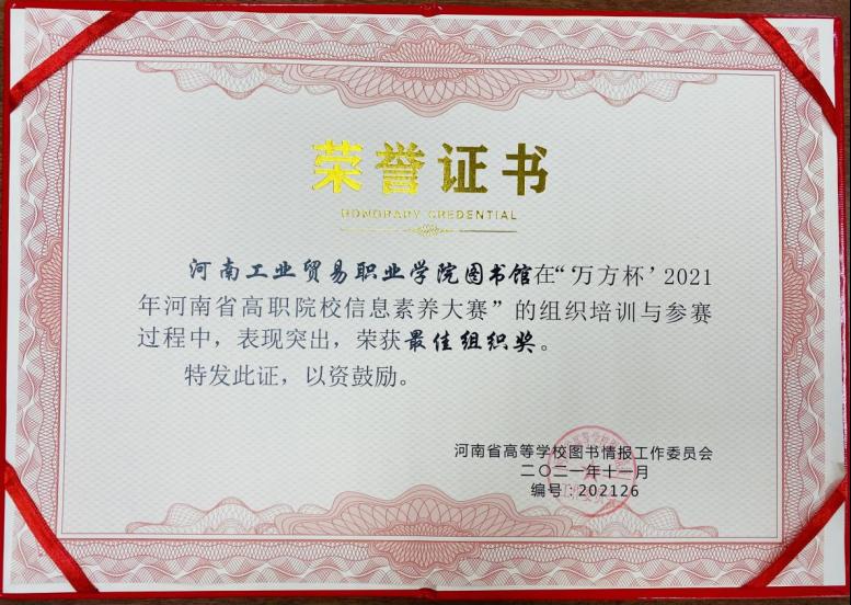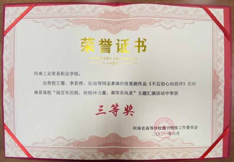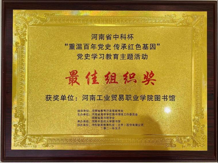 我校图书馆参加河南省中科杯“重温百年党史 传承红色基因”党史学习教育主题活动中,荣获高校组“最佳组织奖”。