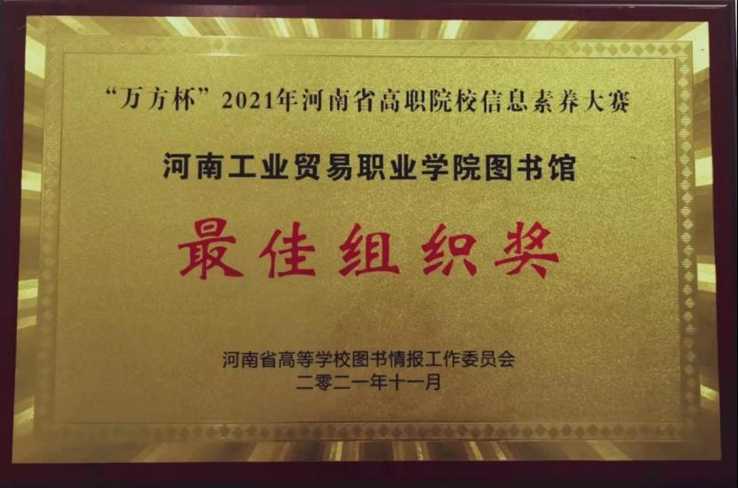 我校图书馆参加河南省高职院校信息素养大赛,荣获学生组“最佳组织奖”。