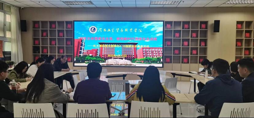为深入学习宣传贯彻党的二十大精神,深入贯彻落实总体国家安全观,增强全民国家安全意识和法治意识,在第八个“全民国家安全教育日”到来之际,机关第四党支部于4月13日下午,在图书馆二楼“文创云”党建活动中心组织开展国家安全教育日主题党日活动。