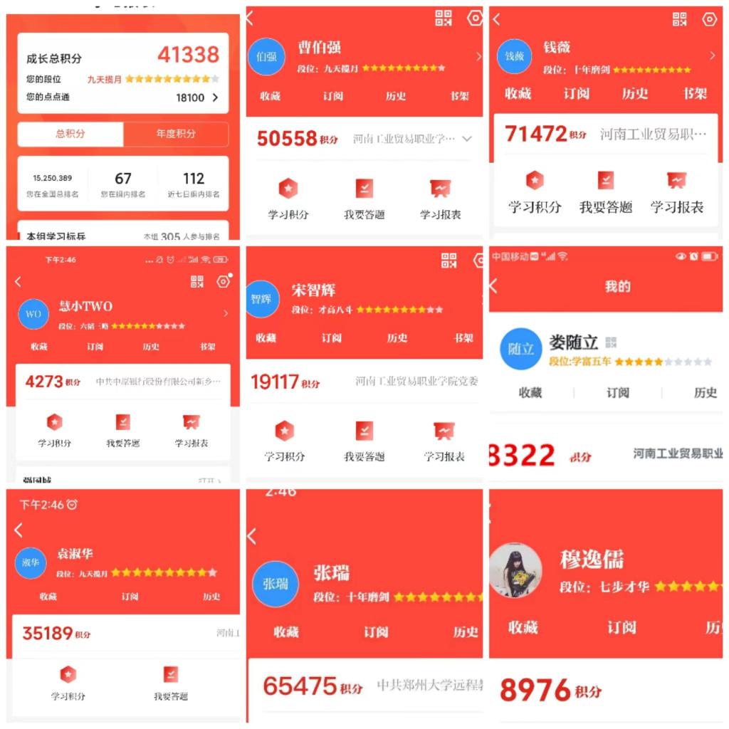 创造活力竞相迸发,聪明才智充分涌流。机关第四党支部“学习达人”竞相涌流,由“学习强国”带动的学新思想、学新知识的网上学习生态已经形成。“学习强国”全国用户按学习积分由低到高被动态分成10个星级段位,分别是:一心一意、再接再厉、三省吾身、名扬四海、学富五车、六韬三略、七步才华、才高八斗、九天揽月、十年磨剑。我的段位是十年磨剑,您在哪个段位?