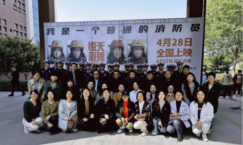 第二党总支全体党员还全程参与了与本片导演彭顺、主演杜江以及消防员代表的交流互动环节,并与河南省消防总队郑州市航空港区消防救援队进行合影留念。