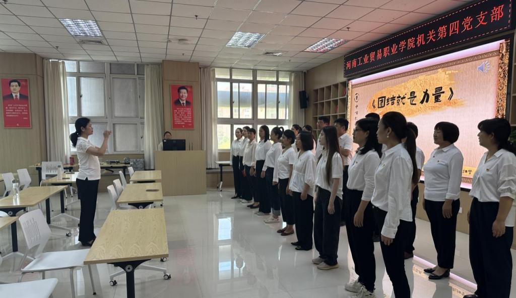 在于虹同志指挥下,全体党员齐声高唱《团结就是力量》。在这首红色经典歌曲中,大家再次感受到伟大的中国共产党和伟大的中华民族是一个团结向上,有信仰有力量的民族。铿锵激越的旋律和雄壮浑厚的气势催人奋进,表达出了党员干部昂扬奋进、无所畏惧和敢于战胜一切困难的炽热精神。