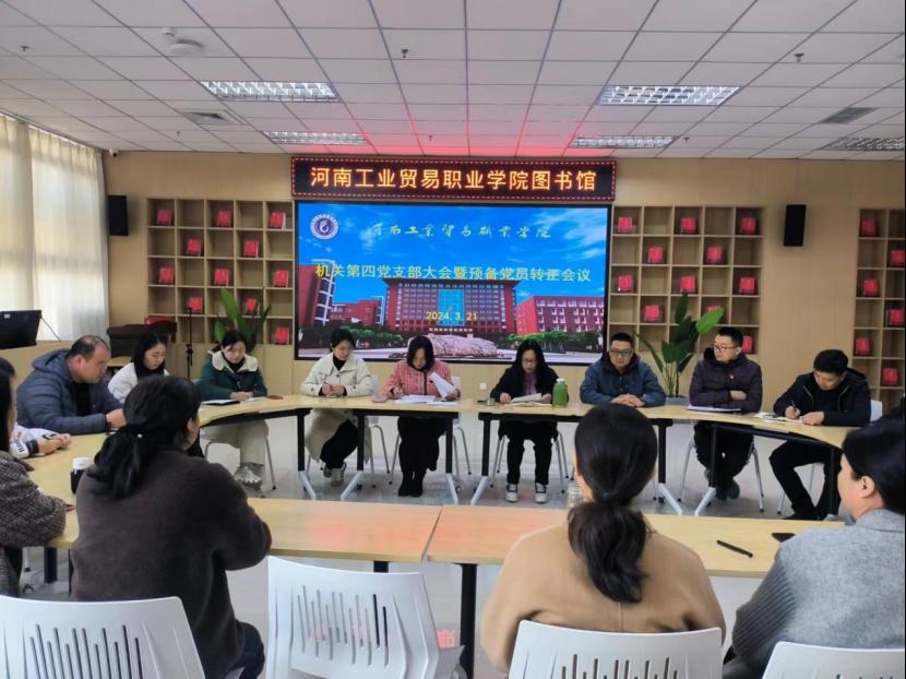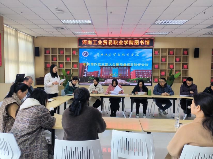 按照支部发展党员工作计划,2024年3月21日下午,机关第四党支部在图书馆思政空间召开了预备党员转正大会,讨论了预备党员杨茜的按期转正事宜。会议由党支部书记钱薇主持。
