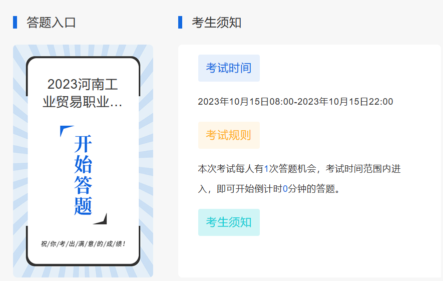 确认赛事名称为“2023河南工业贸易职业学院信息素养大赛省赛选拔赛”无误后,方可答题。