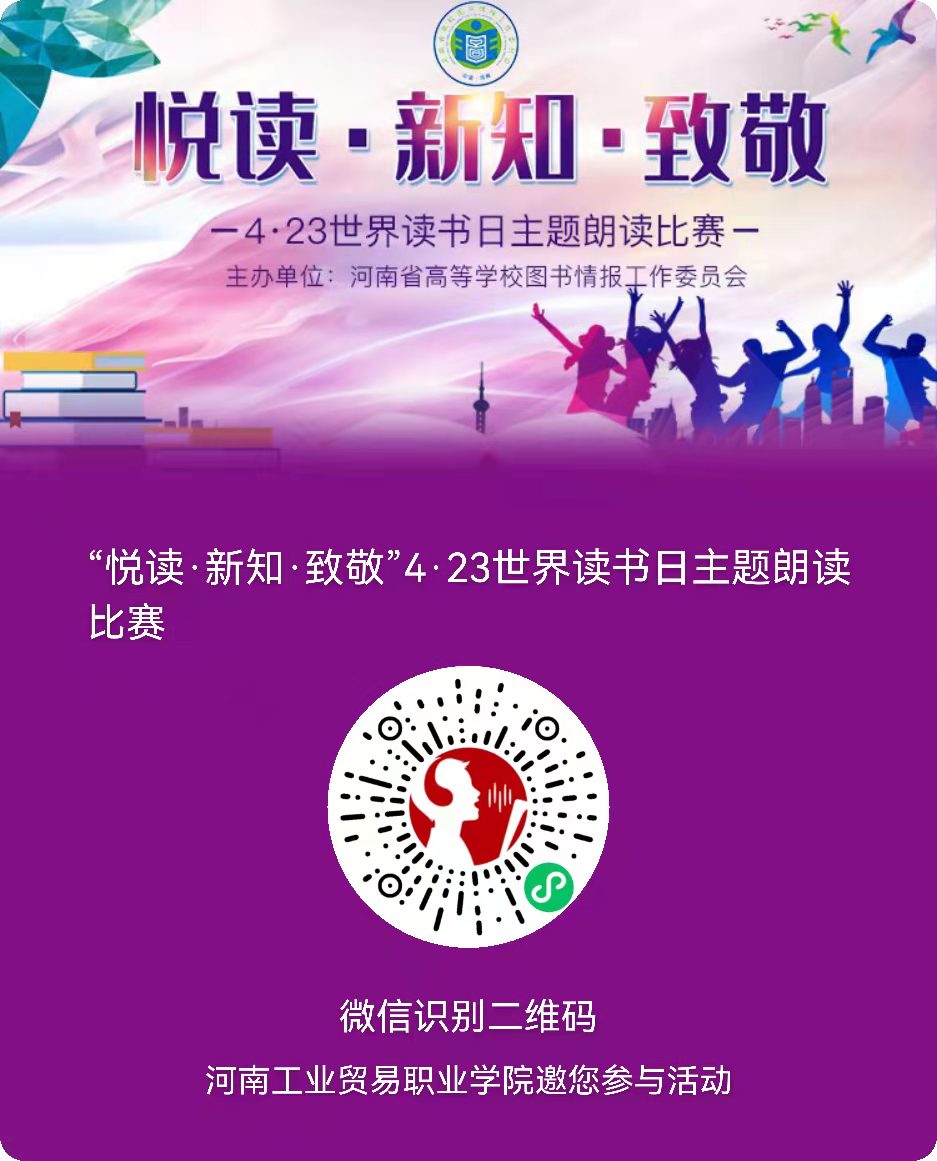 各位读者朋友,您可以扫描图片中二维码,聆听我校师生在2020年“阅读·新知·致敬”主题朗读比赛活动的精彩作品。