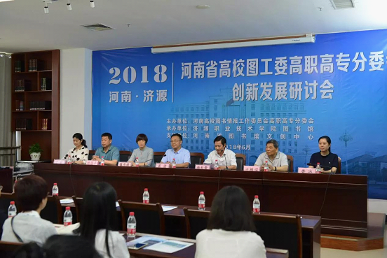 2018年6月4日至6日,河南省高校图书情报工作委员会高职高专分委会2018年创新发展研讨会在济源市图书馆报告厅隆重召开。共有来自省内高职高专、独立学院近50名馆长参加。教育部高等学校图书情报工作指导委员会副主任、河南省高校图工委副主任兼秘书长郑州大学崔波教授出席了会议。会议由河南省高校图工委高职高专分委会主办,济源职业技术学院图书馆承办。我院于虹馆长参加并主持了会议。