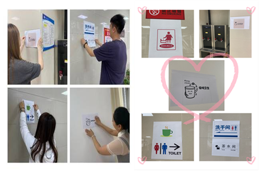 流通部主任阴瑞霞带领流通部老师对阅览环境进行了优化提升。一是对服务大厅、流通书库、阅览室进行了安全卫生大检查,全面排查存在的安全隐患。二是对乱架图书进行了归类整理。三是精心挑选打印指示牌,张贴在合适的位置,指引读者通往开水间、洗手间等区域,温馨提示读者节约用水、保持卫生、爱护环境。办公室主任王芳协助清理桌面留滞图书、张贴温馨提示等,为专升本学生提供优质服务。