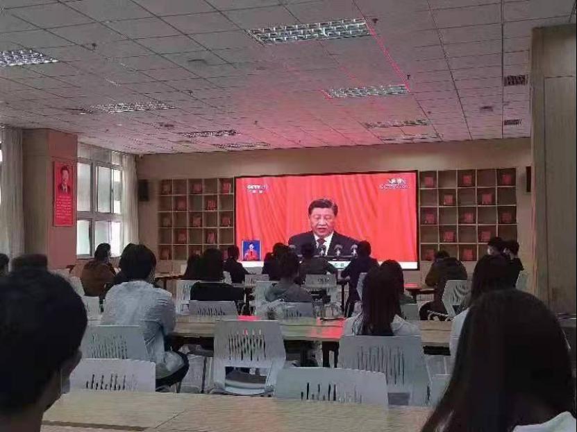 2022年10月16日上午10时,中国共产党第二十次全国代表大会在北京召开,习近平总书记代表第十九届中央委员会向大会作了题为《高举中国特色社会主义伟大旗帜 为全面建设社会主义现代化国家而团结奋斗》的报告。图书馆组织全体在校馆员、勤工俭学学生和馆内读者50余人认真收看和学习党的二十大开幕盛况。