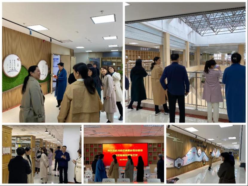 接着,图书馆馆长于虹带领嘉宾参观学校图书馆,并与嘉宾们交流了馆内图书、设备、人员建设以及管理和服务等情况。馆内工作人员陪同讲解了图书馆文化体系建设的思路和内涵。参观中,面对一排排书架,一面面文化墙,一个个特色空间......嘉宾们时而驻足观看,时而认真聆听,时而拍照留存,详细了解我校新图书馆建设的历程,对图书馆发展取得的成果给予充分肯定,纷纷表示要加强与我馆的馆际交流,吸取办馆经验。