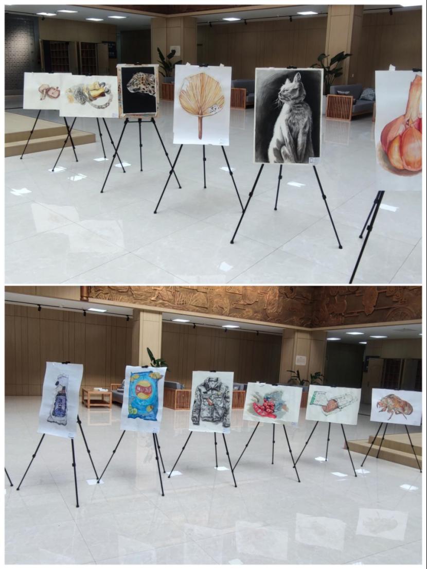 学生作品已于4月18日在图书馆大厅展出,上图为作品展活动现场。