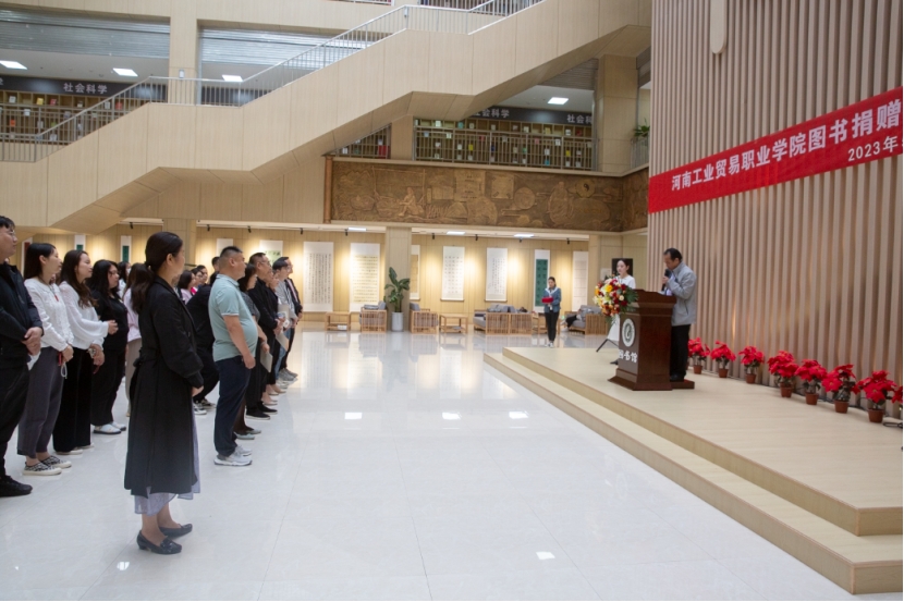 5月25日上午,河南工业贸易职业学院图书捐赠仪式在图书馆二楼大厅举行,学校纪委书记王修法、图书馆馆长于虹、各图书捐赠企业代表、图书馆全体工作人员及部分学生代表出席仪式。捐赠仪式由图书馆老师王珊主持。