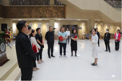 会后,大家在王珊的带领下参观了图书馆,并欣赏了河南省图书馆界题为“学习二十大、奋斗新征程”书法作品巡展在我校图书馆展出的获奖作品。
