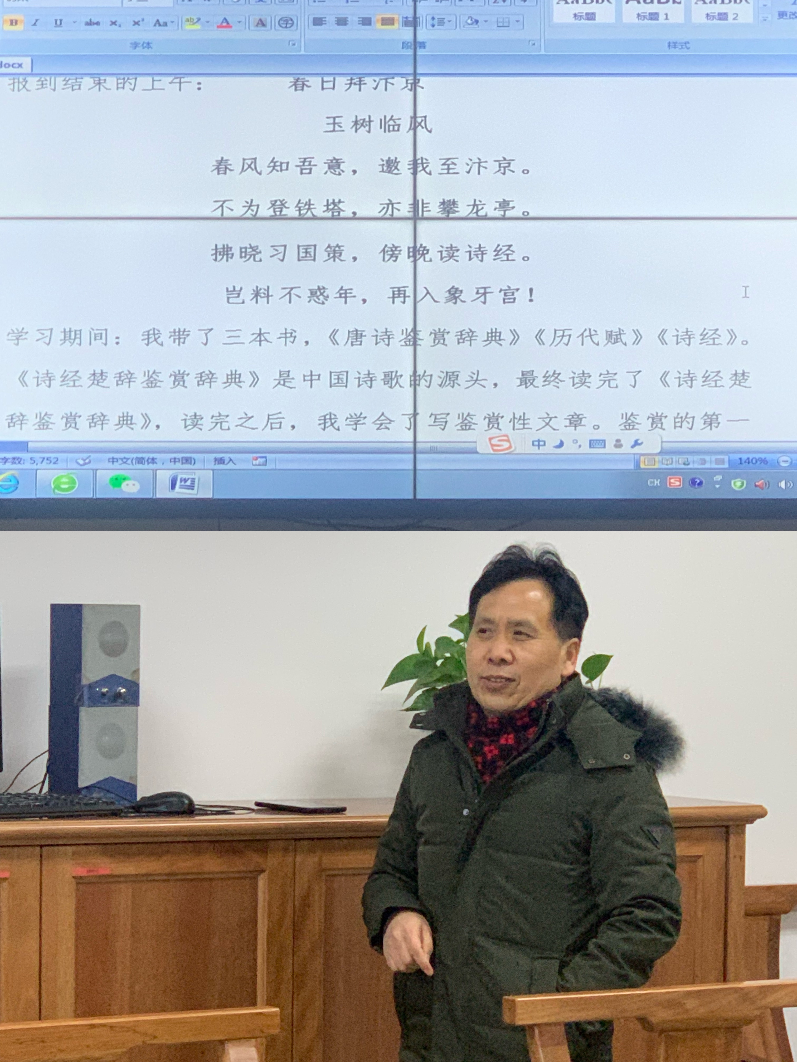 孙长新从自身的读书体会开始谈起,谈到了“读书与学习的关系”、1997年—2016年间的阅读经历,他深有感触地说,2016年以后真正地落实到行动上:读书、写文章和写书法。只听只看是不行的,必须有行动。他还分享了自己创作的诗歌、书法作品、绘画作品等等。