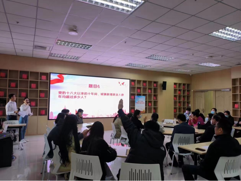 为深入学习宣传贯彻党的二十大精神,深刻领悟马克思主义中国化时代化,准确把握新时代奋斗目标任务,激励全体党员在工作中践行“三个务必”,更好地发挥先锋模范作用,3月14日下午,第二党总支在图书馆思政空间开展了“数读二十大报告 感受数字之魅力”知识竞答主题党日活动,图书馆全体党员参加了此次活动。