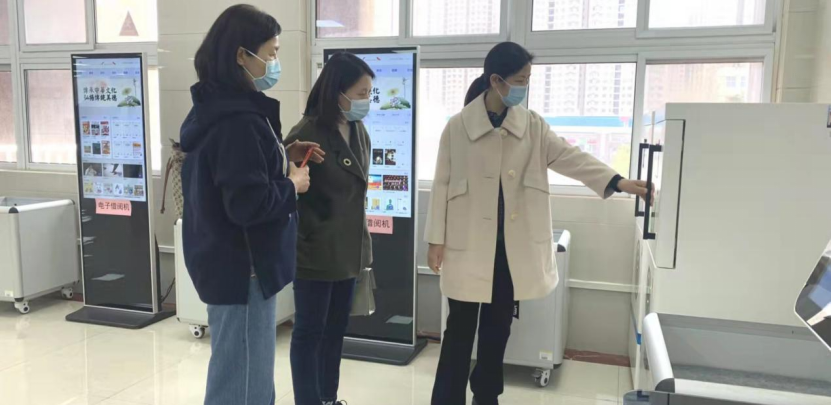 随后,河南检察职业学院图书馆一行,到各书库、阅览室、自修室、服务大厅就我馆采购的书架、报刊架、阅览桌椅以及自助化设备等进行了现场考察。期间,双方还就具体建设内容进行了详细交流。