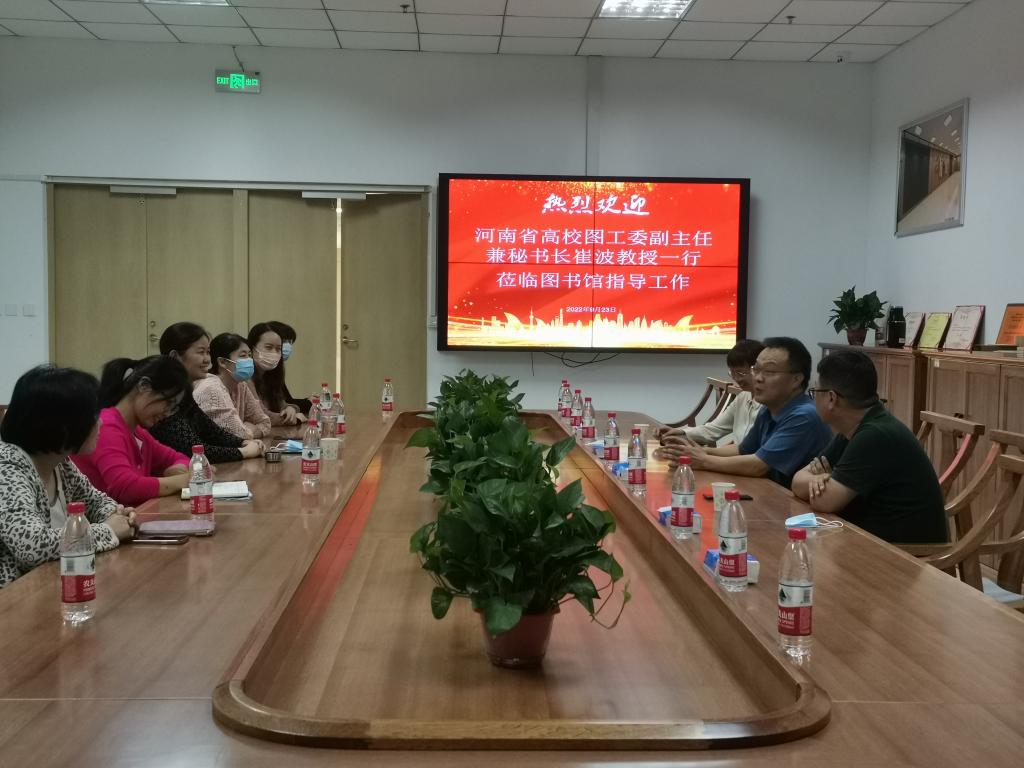 河南省高校图工委副主任兼秘书长崔波教授应邀到我馆指导工作