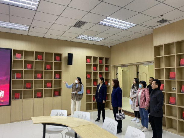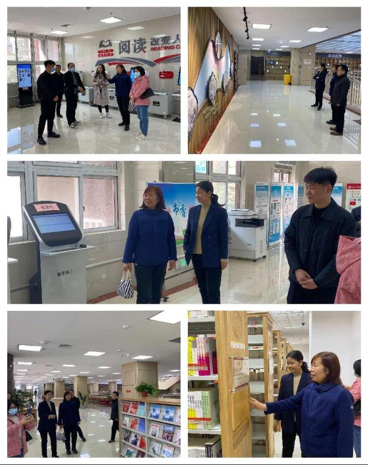 随后,申馆长一行在馆领导的陪同下参观了图书馆的书库、自助借还系统、朗读亭、思政空间和杂志报刊等区域。