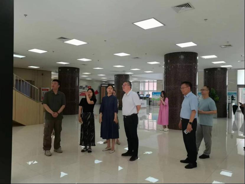 2023年6月28日上午,濮阳医学高等专科学校副校长牛震、图书馆馆长孙亚丽、副馆长董然然、现代教育中心主任万鑫、副主任汪绪彪一行来我校龙湖校区图书馆参观交流。图书馆馆长于虹、现代教育技术中心主任贺贝以及相关工作人员陪同交流。