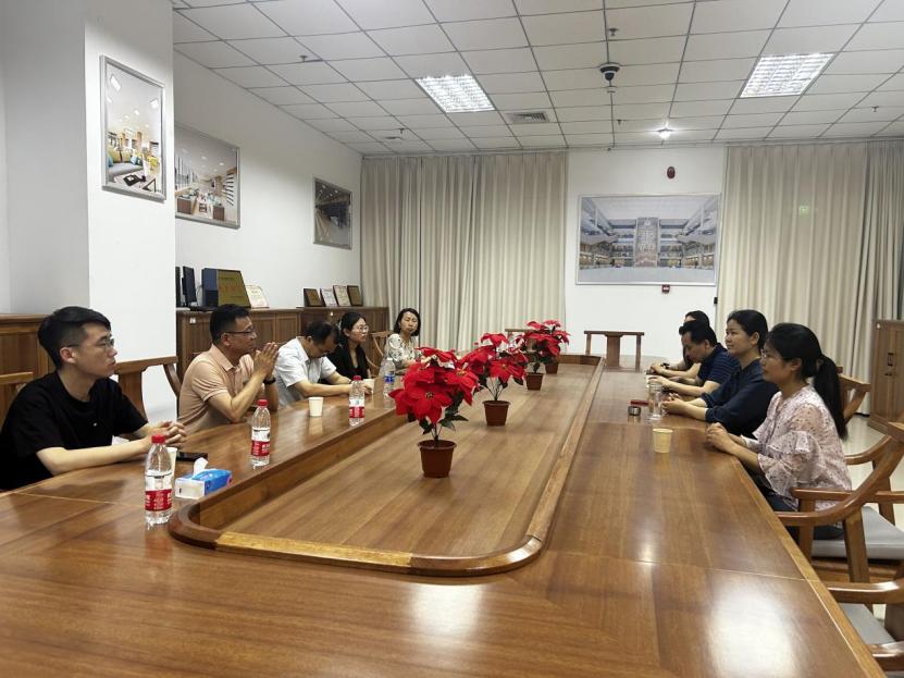 参观结束后,双方在会议室进行交流座谈。会上,于虹首先对洛阳职业技术学院领导和老师们的莅临指导表示热烈欢迎,并对来宾详细介绍了我馆的信息化建设现状、空间布局和资源服务等举措。随后,双方就空间建设、智慧化建设、信息资源建设与管理服务等话题展开了深入的交流和讨论,分享了实际工作中的经验。双方一致表示,在今后工作中要继续增进友谊,加强馆际交流,互相学习和借鉴先进经验与做法,共同促进图文事业新发展。