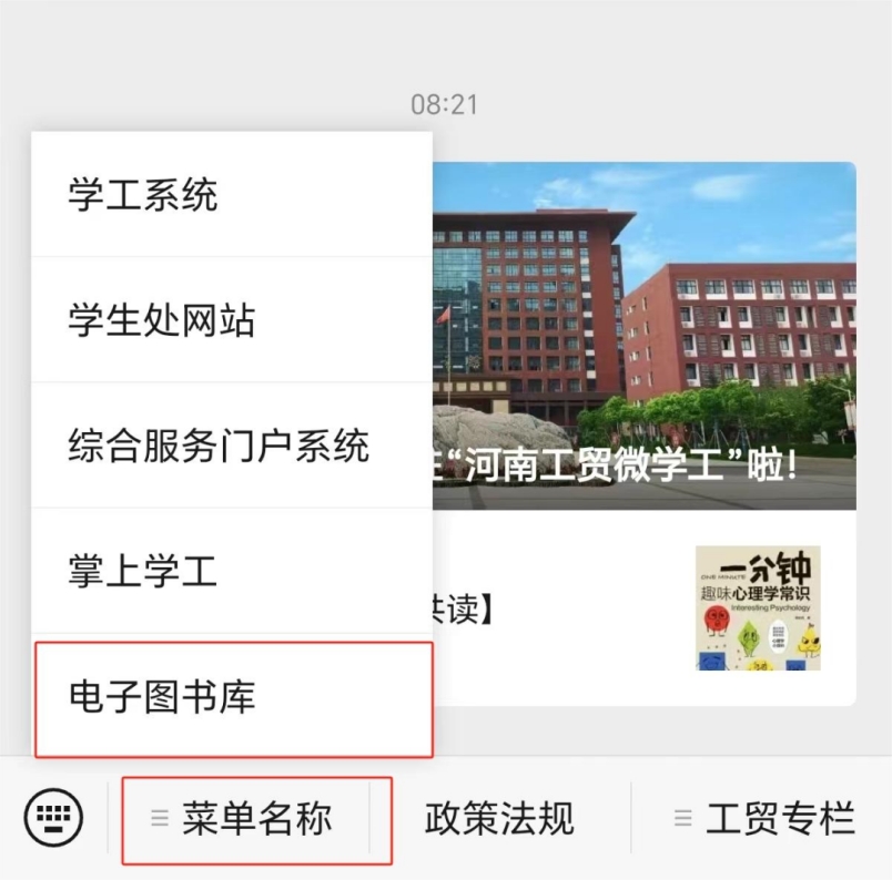 1. 关注“河南工贸微学工”微信公众号;