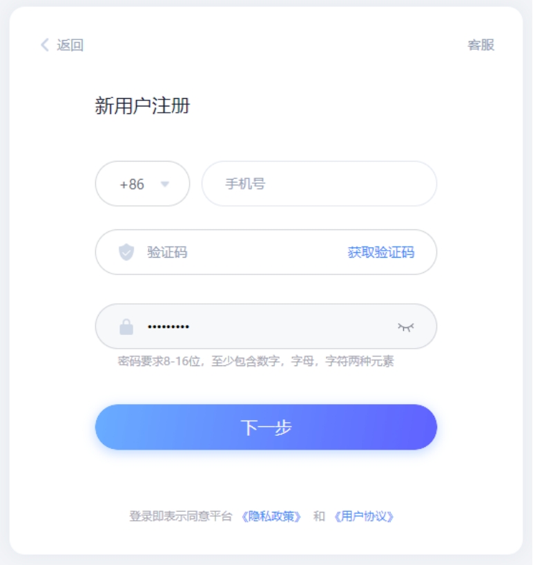 (2)输入手机、密码及相关信息。