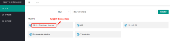 校内资源主要是实现校内网页软件的打开,完成在校内打开该软件的效果。目前预设的地址有《馆藏图书查询系统》、 《校内数字资源平台》等。