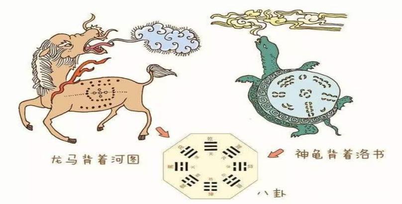 相传,上古伏羲氏时,洛阳东北孟泽县境内的黄河中浮出龙马,背负“河图”献给伏羲,伏羲依此而演成八卦,后为《周易》的来源。又传,大禹时,洛阳西洛宁县洛河中浮出神龟,背驮“洛书”献给大禹,大禹依此治水成功,遂划天下为九州。