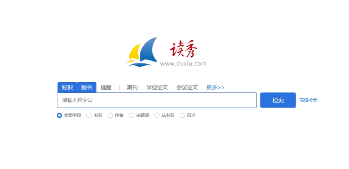在读秀首页选择图书,检索框下方提供有全部字段、书名、作者、主题词几个检索字段,您可以根据需要选择检索字段,并在检索框内输入关键词。