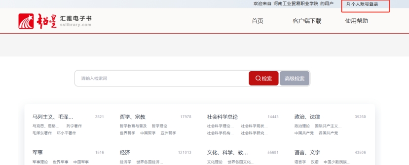 账号认证完成之后,可以直接网站首页登录“个人账号”。