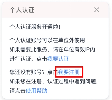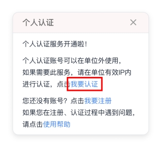 注册完成后,请在校园网IP内进行认证。如果您已经有个人账号,可直接点击“我要认证”。认证完成后,即自动绑定校园IP。