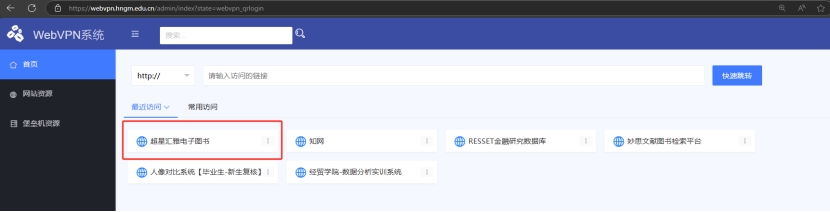 1、通过登录“河南工贸WebVPN系统”访问