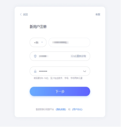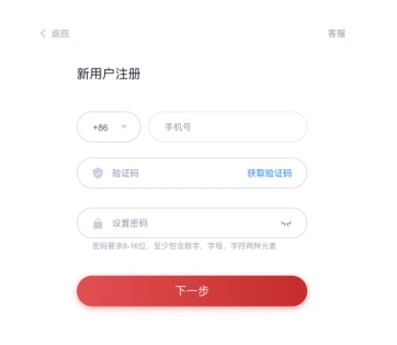 第一步,在移动app,点击我的,进行“新用户注册”