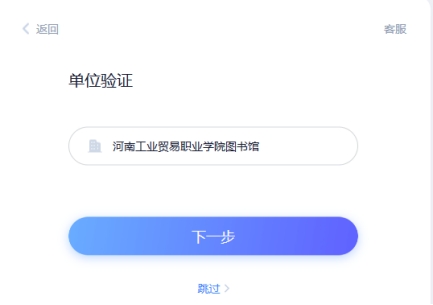 第二步,账户认证。注册完账户,请继续进行账户认证。在“单位验证”页面输入并选择“河南工业贸易职业学院图书馆”,点击“下一步”;在“完善信息”页面输入单位验证码hngmtsg 和真实姓名完成绑定后,点击“下一步”会跳转进入学习空间,页面上会显示自己的个人信息,到这一步即认证成功。