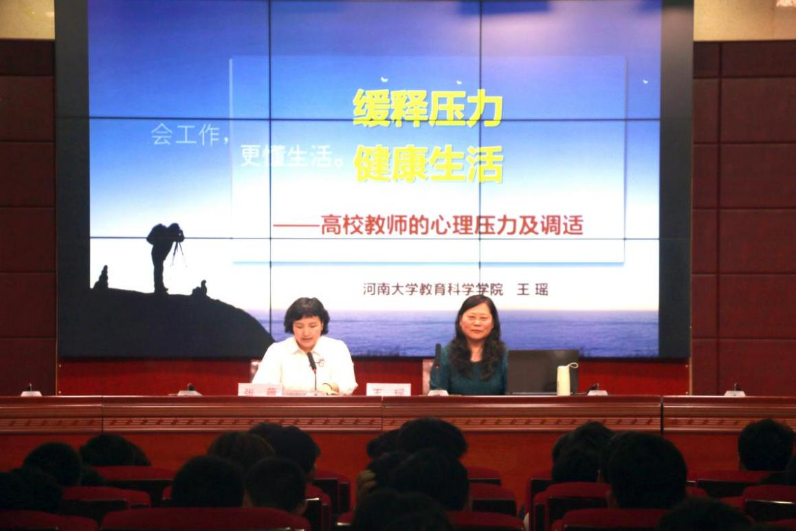 值第22个“5.25”全国大中学生心理健康日到来之际,校团委心理健康教育中心邀请河南大学教育科学学院心理学专业王瑶教授,于5月21日下午到校为师生们做“缓释压力 健康生活”专题讲座,拉开了2021年5.25学生心理健康周系列活动的序幕。在校专兼职辅导员、团学工作老师及班级团支书、心理委员近300人参加讲座。