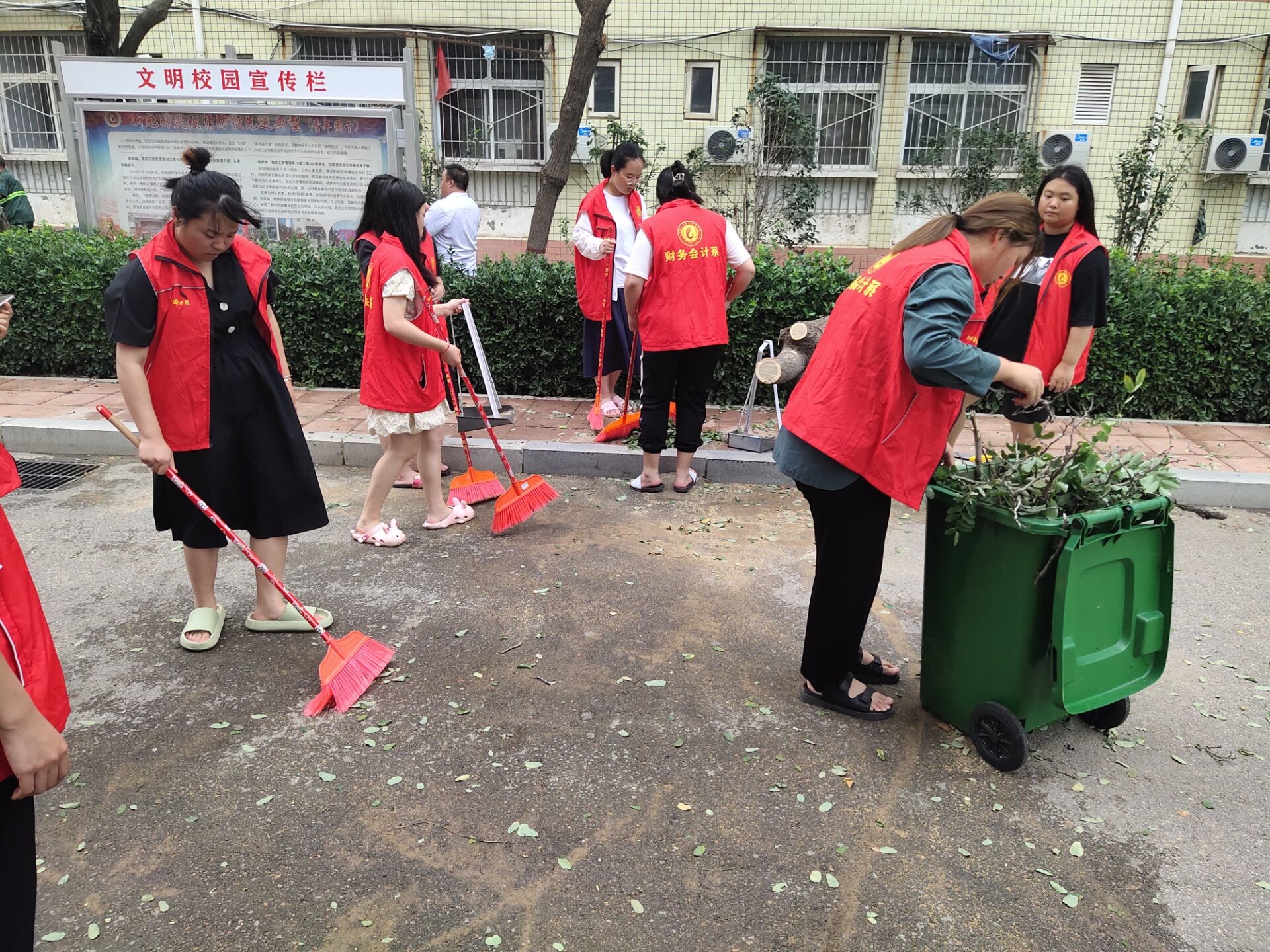 7月22日志愿小组开始了紧张作战,清理道路上的杂物,排查校园安全隐患。“爱”比雨要大,他们用自己的行动守护美丽的工贸校园,同时也为抗洪救灾出一份自己的力量。