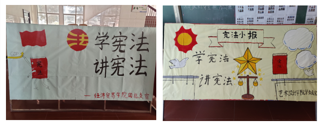 此次“宪法宣传周”,学校积极组织,广泛开展宪法宣传。广播站通过“有声”宣传宪法知识,传送到全院师生耳边;通过在校园显要位置悬挂宪法相关宪法宣传标语、制作宪法宣传主题专栏;学校各个学生组织、各班开展宪法主题会,进一步培养了学生知法守法的思想意识,提高了同学们的整体素质,营造了浓厚的宪法宣传氛围。