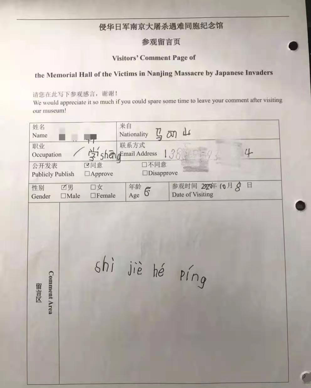 郑重写下对和平的祈愿
