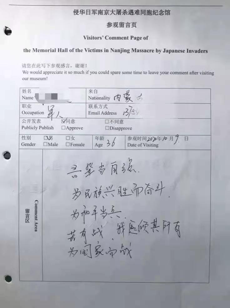 在侵华日军南京大屠杀遇难同胞纪念馆,截至11月20日闭馆前,“南京大屠杀史实展”今年开放留言的62天里,有20550位参观者写下了自己的寄语,观众留言页累计高148厘米。